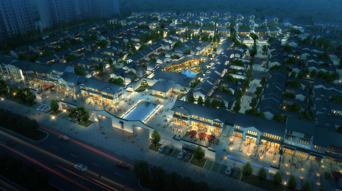 中式商业空间:借鉴传统中式商业形态,通过差异化的建筑形体,营造余味独特的商业空间。