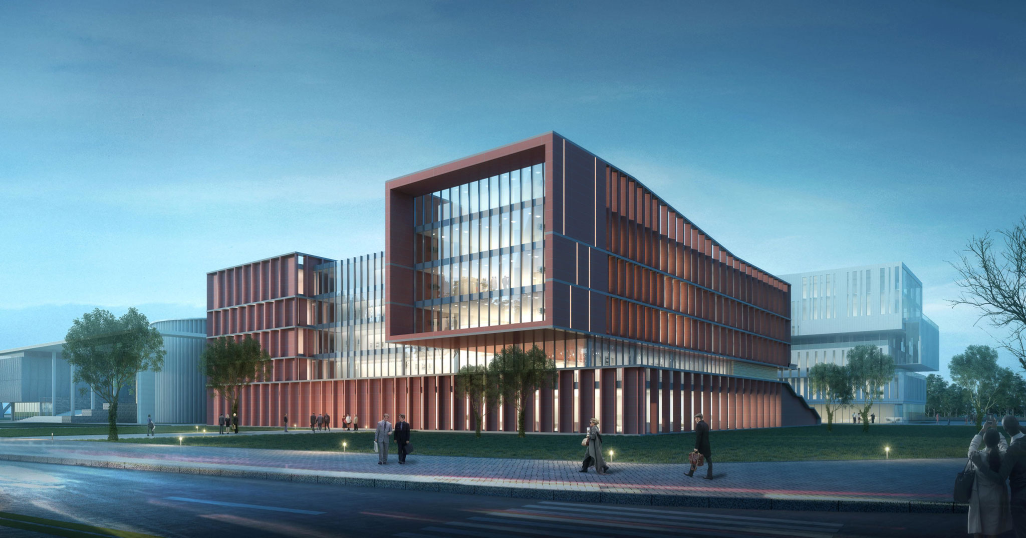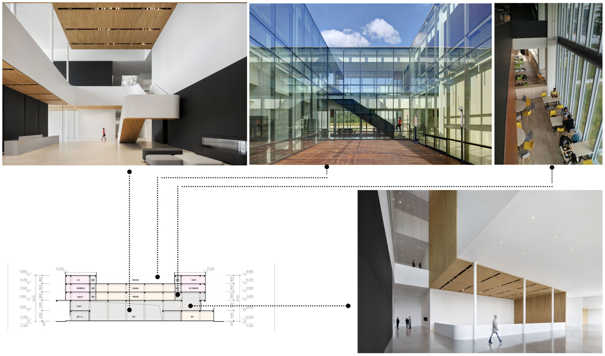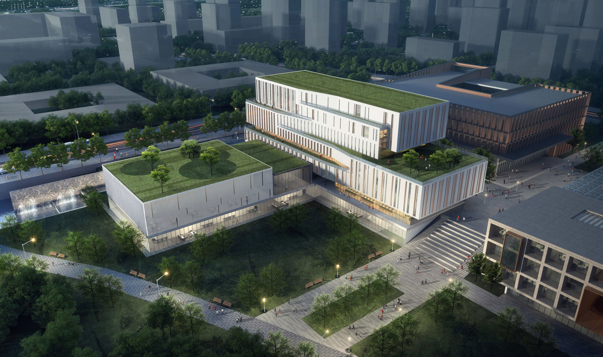 项目中,将其置于整个建筑的中心位置,暗示档案的核心性和机密性;建筑表皮采用纵横交错的陶土板构造而成,与书架书本的陈列方式神似,与档案馆的陈列功能相匹配。