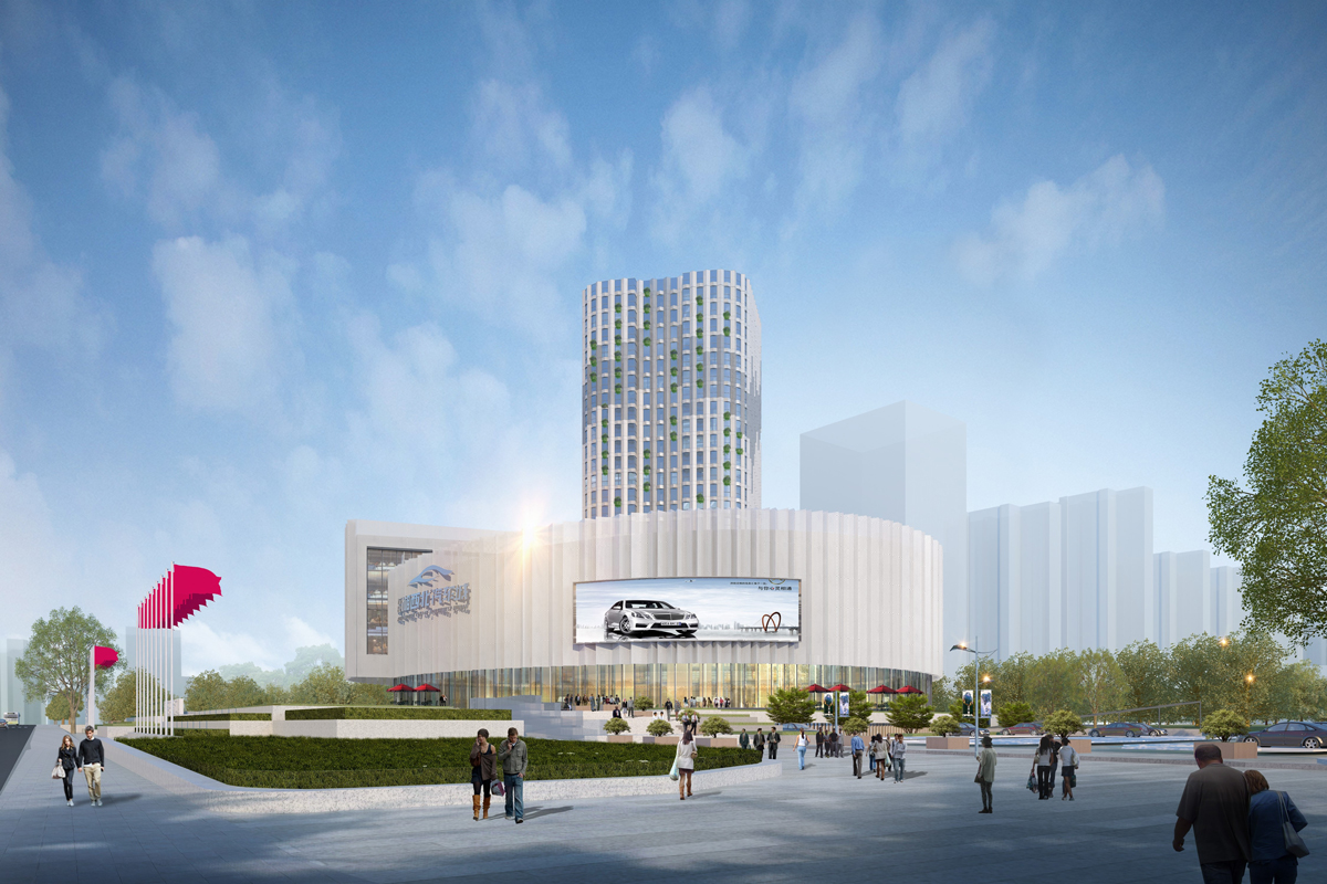本项目总用地面积28900.21平方米,总建筑面积63123平方米, 其中:①商业建筑面积50758平方米,A座国际名车展示中心及B座综合商业楼为整栋单体,A座国际名车展示中心建筑整体2层,总高度23.8米,展厅部分层高8.0米;B座综合商业楼建筑整体26层,总高度99.6米,首层层高5.4米,2-26层层高3.6米。建筑最大跨度12.8米;②物业管理用房建筑面积283平方米;③地下建筑面积12082平方米,地下一层。该项目工程费用为22701.91万元