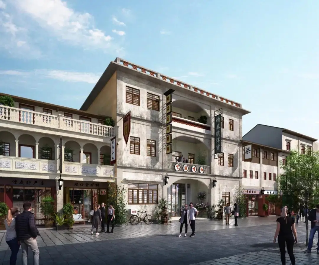 古街整体策划:打造多主题南洋风情街,重现圩镇商贸盛景。充分利用松口镇传统建筑、非物质遗产、历史文化等要素,串联移民广场、火船码头、旧船厂等重要节点空间,通过传统建筑活化利用和功能植入方式,丰富街区业态功能类型,形成风情浓郁、尺度宜人的特色古街,引入文化活动表演、灯光秀活动展示、文创空间体验、网红建筑打卡等活动,加深游客对松口古街的游览印象。