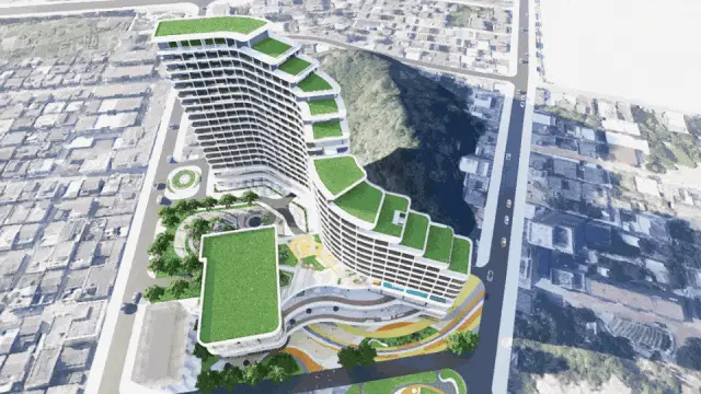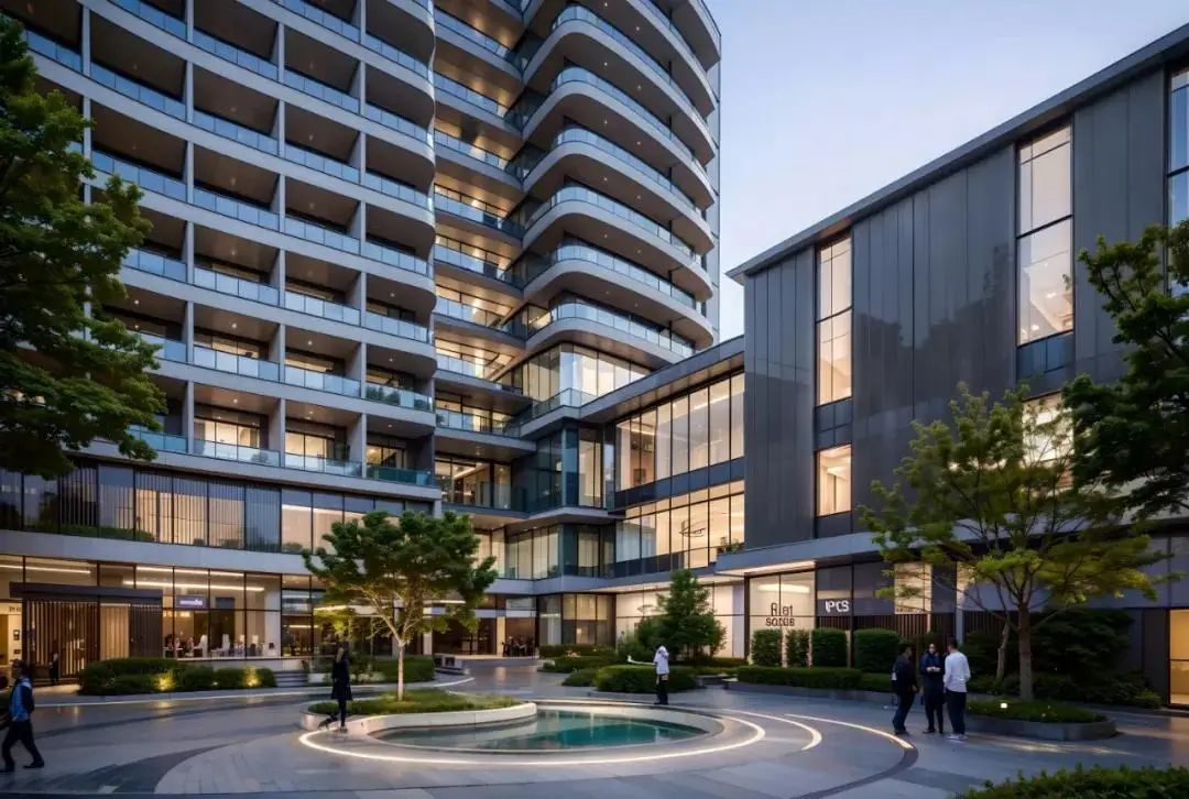 在设计理念上,方案运用层层退台设计手法。每层退台皆具特色,不仅提升建筑立体感,更为居住者提供专属观景平台。退台上巧妙融入立体绿化植被,营造空中绿境,既美化环境,又为居住者提供亲近自然、放松身心的空间。