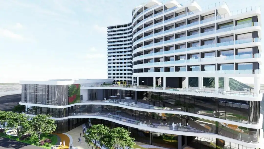百马御景酒店项目坐落于江门市新会区崖门镇的理想地段,总用地面积达12691.83㎡,净用地面积为10847.1㎡,总建设规模约4.46万㎡。项目规划独具匠心,拟建A、B两栋塔楼及裙房,巧妙围合形成超1000平方米的中心景观绿地,宛如城市绿洲,为市民打造惬意的绿色休闲空间。