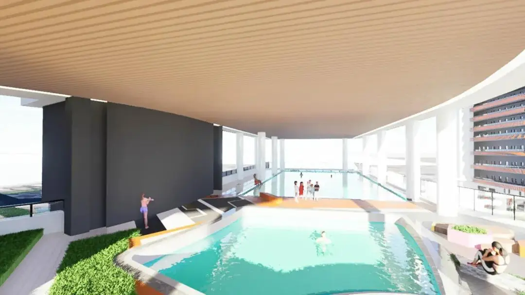 而酒店的空中泳池,无疑是整个项目的点睛之笔。它高悬于裙房架空层,仿若一座遗世独立的天空之境,四周透明玻璃护栏环绕,恰似为这片梦幻之境编织的晶莹羽翼。当游泳者畅游其中,仿佛与天空融为一体,周边的美景如同一幅徐徐展开的山水画卷,在眼前缓缓流淌,带来前所未有的极致体验,彰显着酒店无与伦比的高端品质。