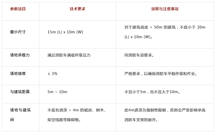 覆盖范围:场地必须能保证消防车作业范围覆盖整个建筑消防扑救面。
