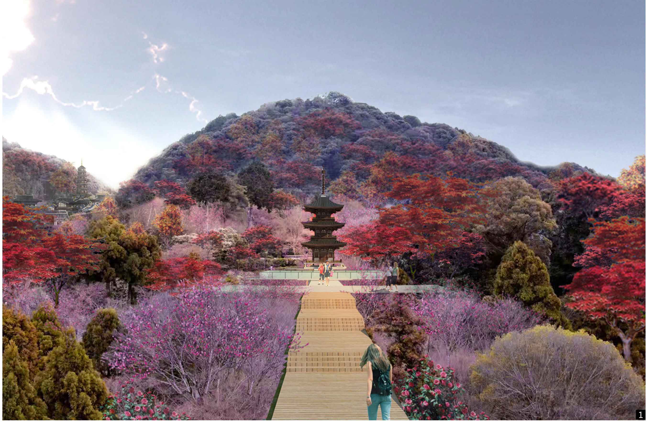 正觉寺项目方案,取材佛学概念,将场地、布局、形制寓意为再生之花、山林之花、禅宗之花。