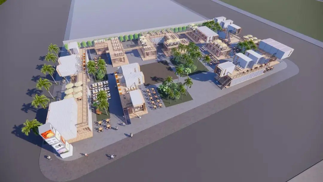 本项目位于南沙东涌镇庆盛高铁站旁,是政府为地摊经济搭建的一个临时集市,同时为周边正在开发的片区配套公共服务设施,打造集零售、餐饮、娱乐、休闲、文化艺术等多种功能于一体的综合性商业街区。
