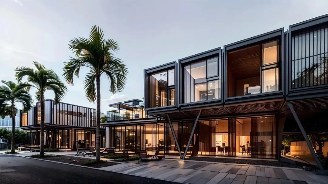 设计利用建筑手法创造“阴影空间”,采用灰空间、柱廊等空间形态,营造绿色环保、以人为本、舒适宜居、尺度宜人的生态生活园区。建筑风格采纳了当地木材的颜色和坡屋顶的形式,沿用中印两国的文化共同点进行立面设计,崇尚自然,着重通风、遮阳、隔热、防潮,建筑形体轻巧通透、淡雅明快。
