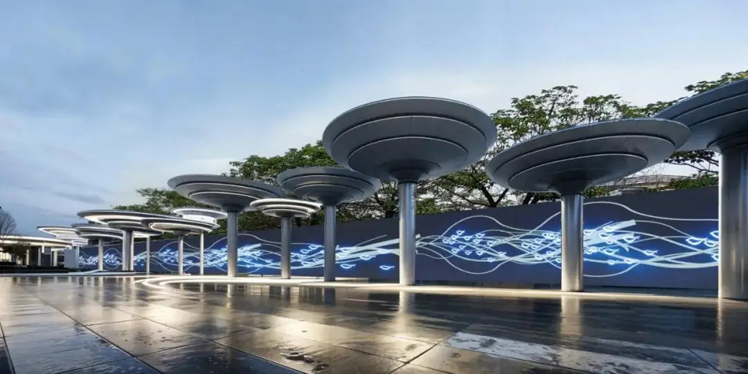 设计通过撤销现有公交站,与展示墙一起构成功能复合性,留给人行道更多的空间,兼顾实用、功能与美观。展示墙结合全息投影功能,充分利用现代声、光、电等数字科技,打造震撼夺目的观赏效果,吸引人流聚集。
