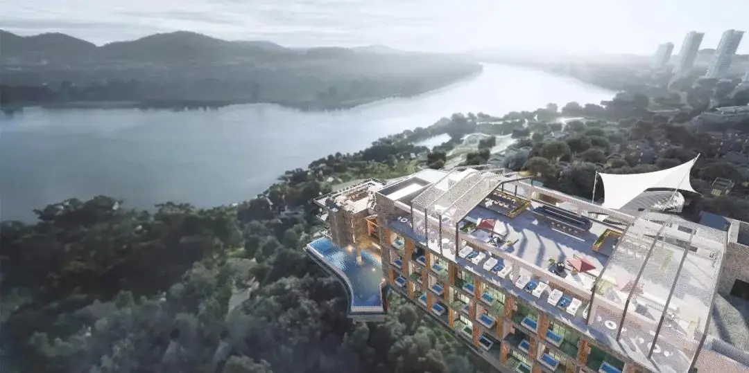 半环抱状的总图布局,敞开怀抱式的拥抱自然,东面实现每一户对景观湖面的最佳视线覆盖,一览无余;西南面对青山绿水创造最开阔的视野;中间依山就势的中心商务区、天际泳池的植入、入口灵动创意的园区商务配套,以及别具个性的整体立面设计,真正让八方来客实现圈层价值的融合。