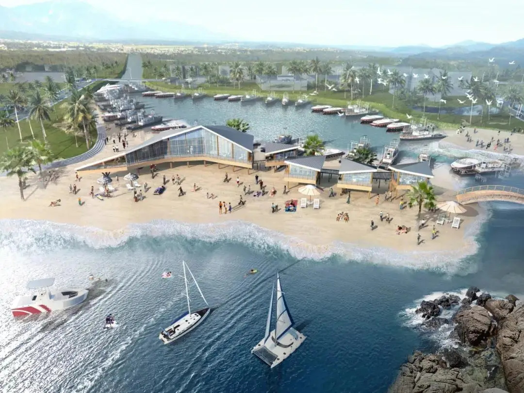 项目依山面海,海滩宽广无垠,沙质洁白细腻,海浪适中平缓,是粤东地区优质的天然海滨浴场之一,也是我国“海市蜃楼”景观三大区域观赏点之一。项目现为一排连廊建筑,建筑外观破旧,功能单一,无法满足项目未来功能需求。本次改造针对该项目痛点,丰富项目的娱乐及配套设施,改造后成为游客休憩和娱乐空间。