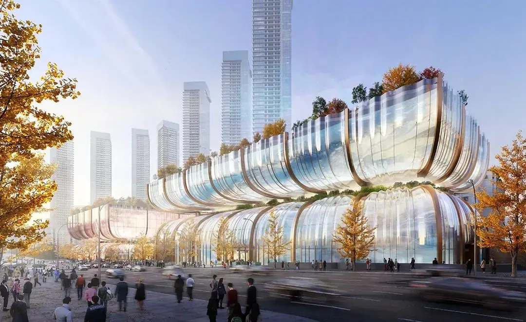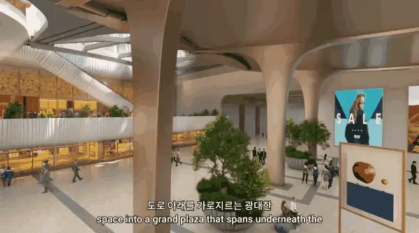 当游客离开重新设计的现有地铁向上行走时,通风良好采光充足的入口中庭将他们吸引到地面上的两个景观广场。继续前行,将来到一个开放的夹层花园,这里咖啡馆、餐厅和商店林立。新的充满植物的开放式屋顶为人们提供了另一片绿地,与玻璃幕墙相称,为人们提供了多个视角和城市倒影。室外空间的设计采用本土植物和精心的景观设计,一年四季都能带来自然的趣味。