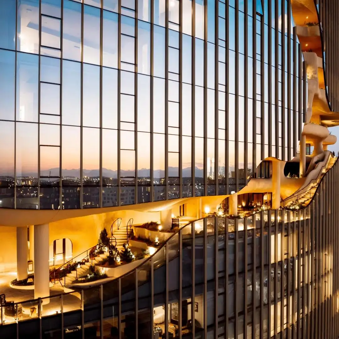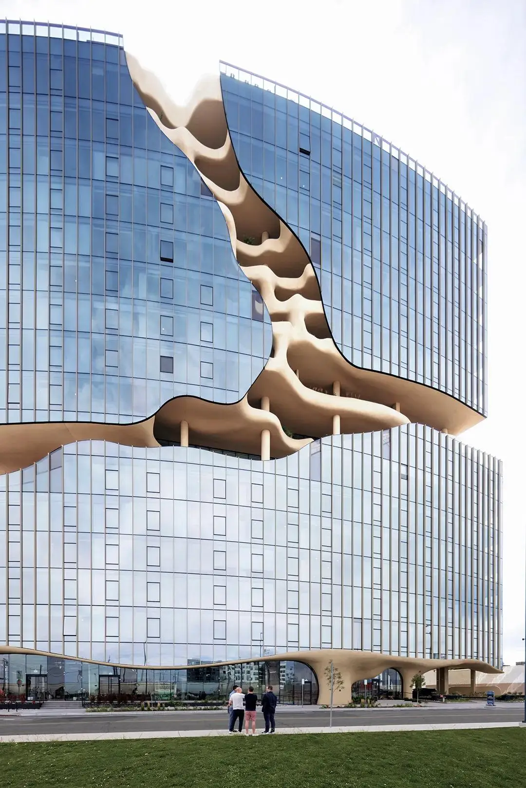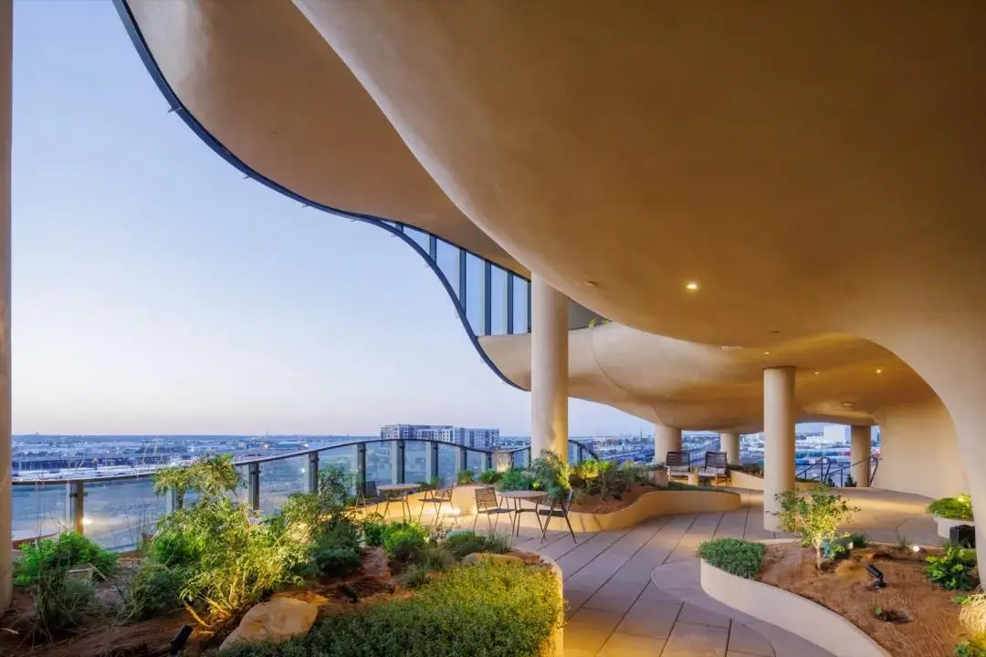 “裂缝”沿着大楼直上,可到达约630平方米的屋顶景观露台。这个以高山台地为灵感的空间设有游泳池、水疗中心和户外花园,也可一览落基山脉和丹佛天际线。“垂直峡谷”解决了丹佛市对高密度城市住宅的需求,同时为居民提供舒适、自然的户外交流场所。