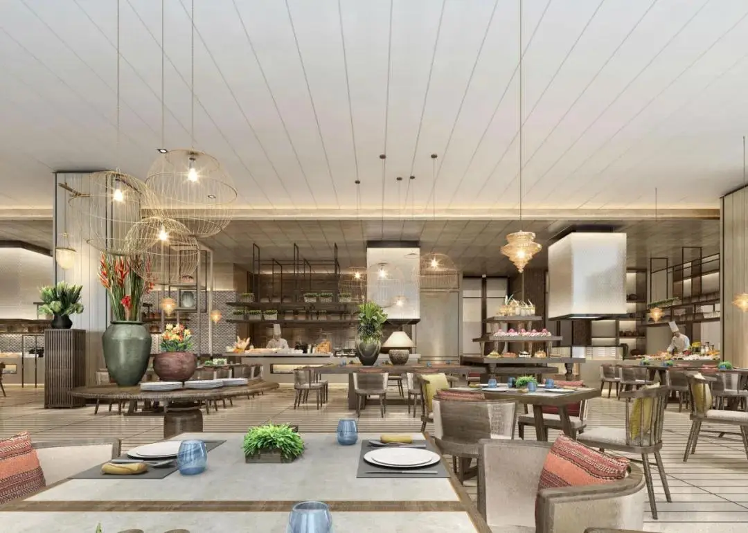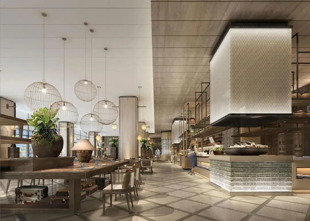 区别于传统厂房办公区给人拥挤、嘈杂、压抑,产业园室内设计注重人文关怀。员工餐厅作为未来展示空间,极具科技感,为其精英人才与卓越客户提供顶尖就餐环境,彰显了企业的人性化管理和前瞻视野。