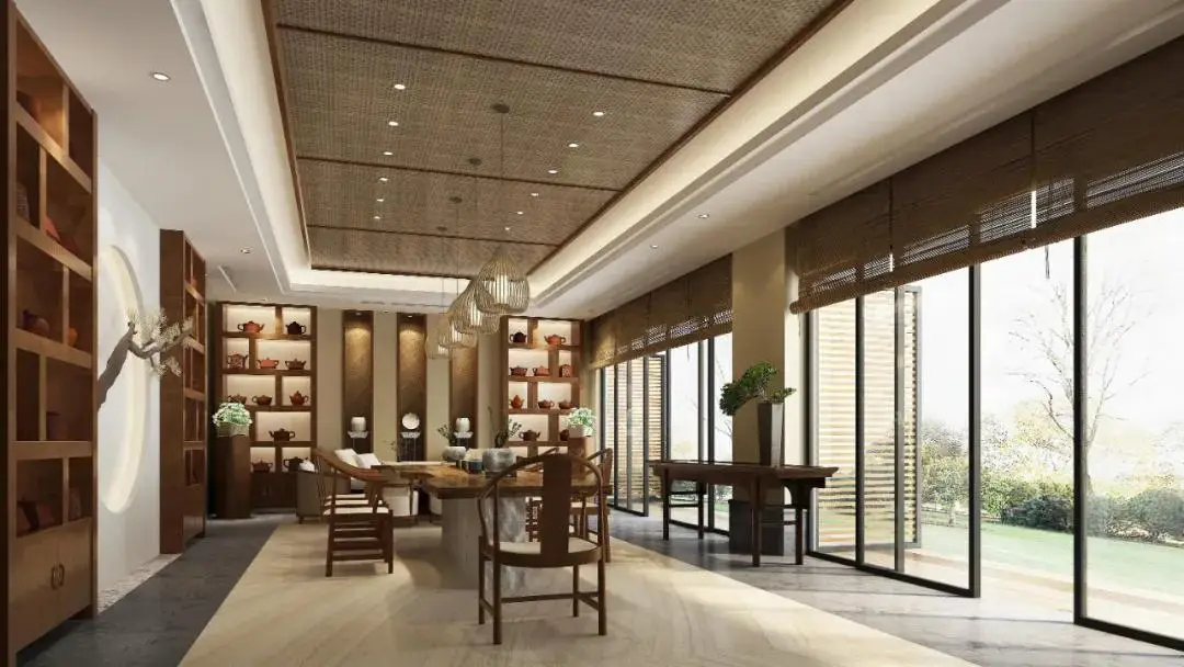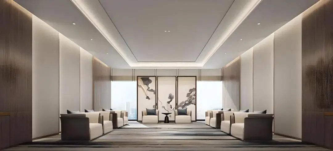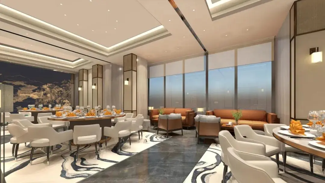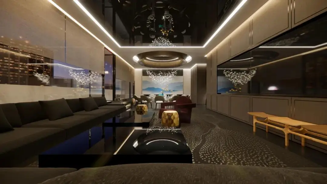 企业会所,象征神经元交流之地。大宸设计将其打造成一个宽敞而优雅的休闲场所,包括餐厅、咖啡厅、KTV、茶室等功能空间,带动人与人之间的互动与连接。同时结合点状、线形投射的照明灯光,烘托各部分的独特氛围。