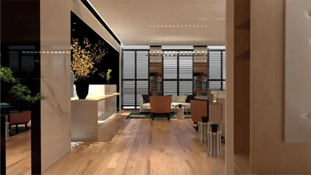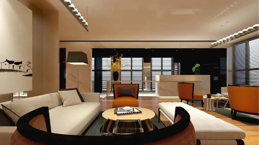 办公区以智慧纽带为设计元素,以环境通透与采光为核心,采用现代简约的设计风格,运用大面积落地玻璃,打造明亮通透的办公环境。同时,我们注重动线规划、空间体验、可持续发展,创造了一个既满足工作需求又能激发创新思维的环境。