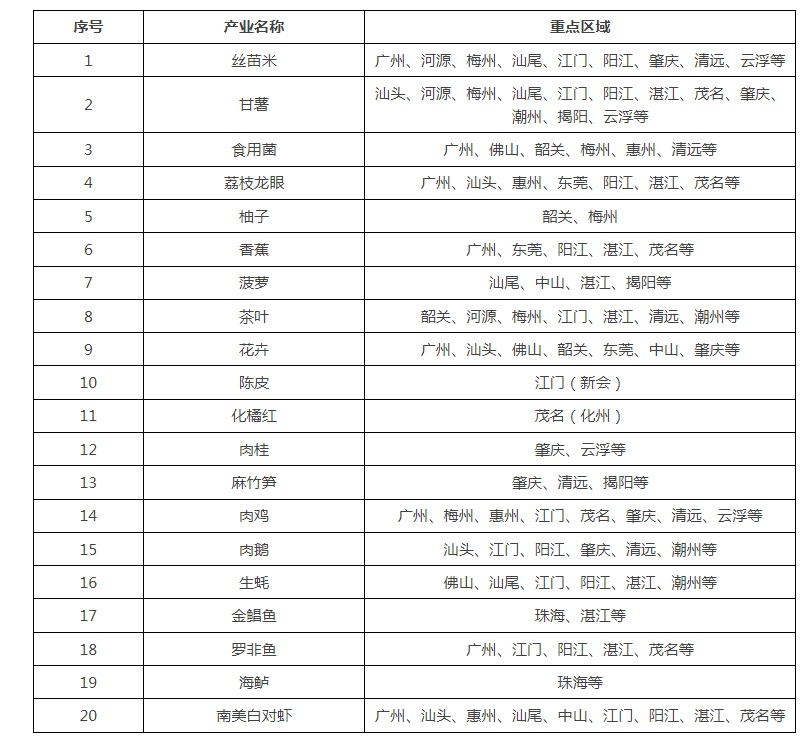 广东省20个百亿元级现代农业产业集群