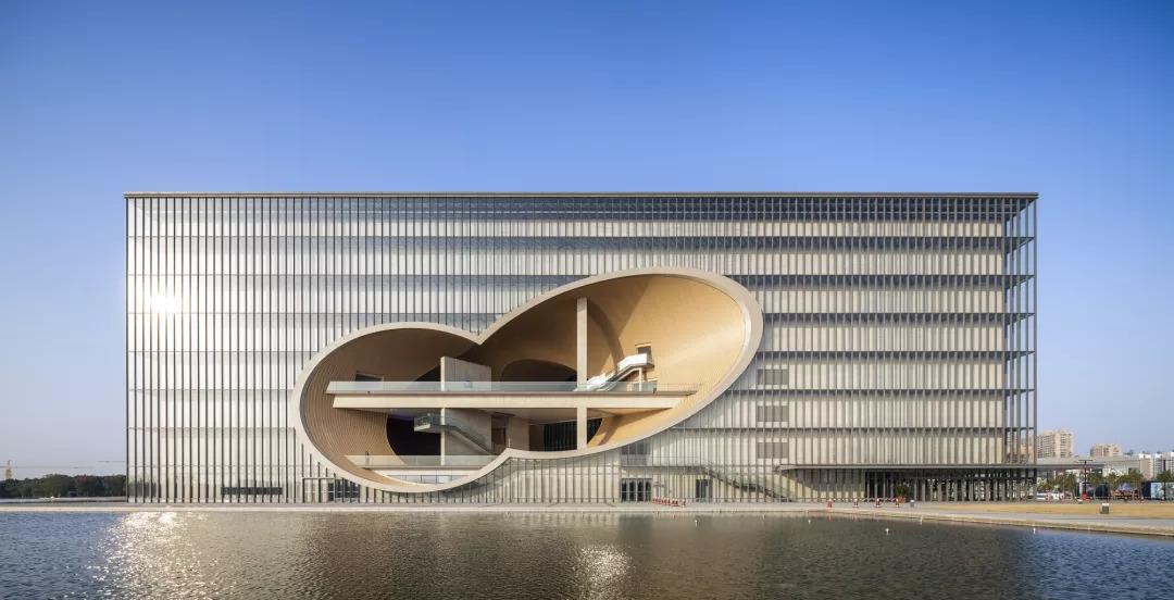 上海保利大剧院由安藤忠雄设计,设计灵感来源于“万花筒”,各种角度的斜筒设计“洞穿”剧院的各个方向。斜筒的尽头是剧场,正如“万花筒的尽头是舞台”。