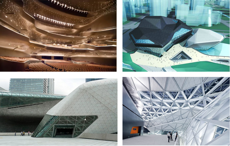 英国的建筑大师Zaha Hadid设计的广州歌剧院,其外形独特,犹如珠江河畔的两块鹅卵石。