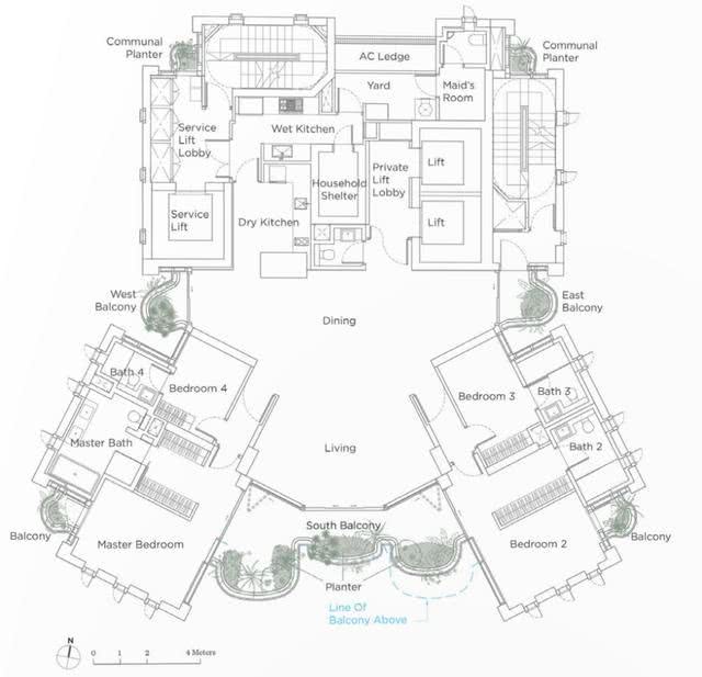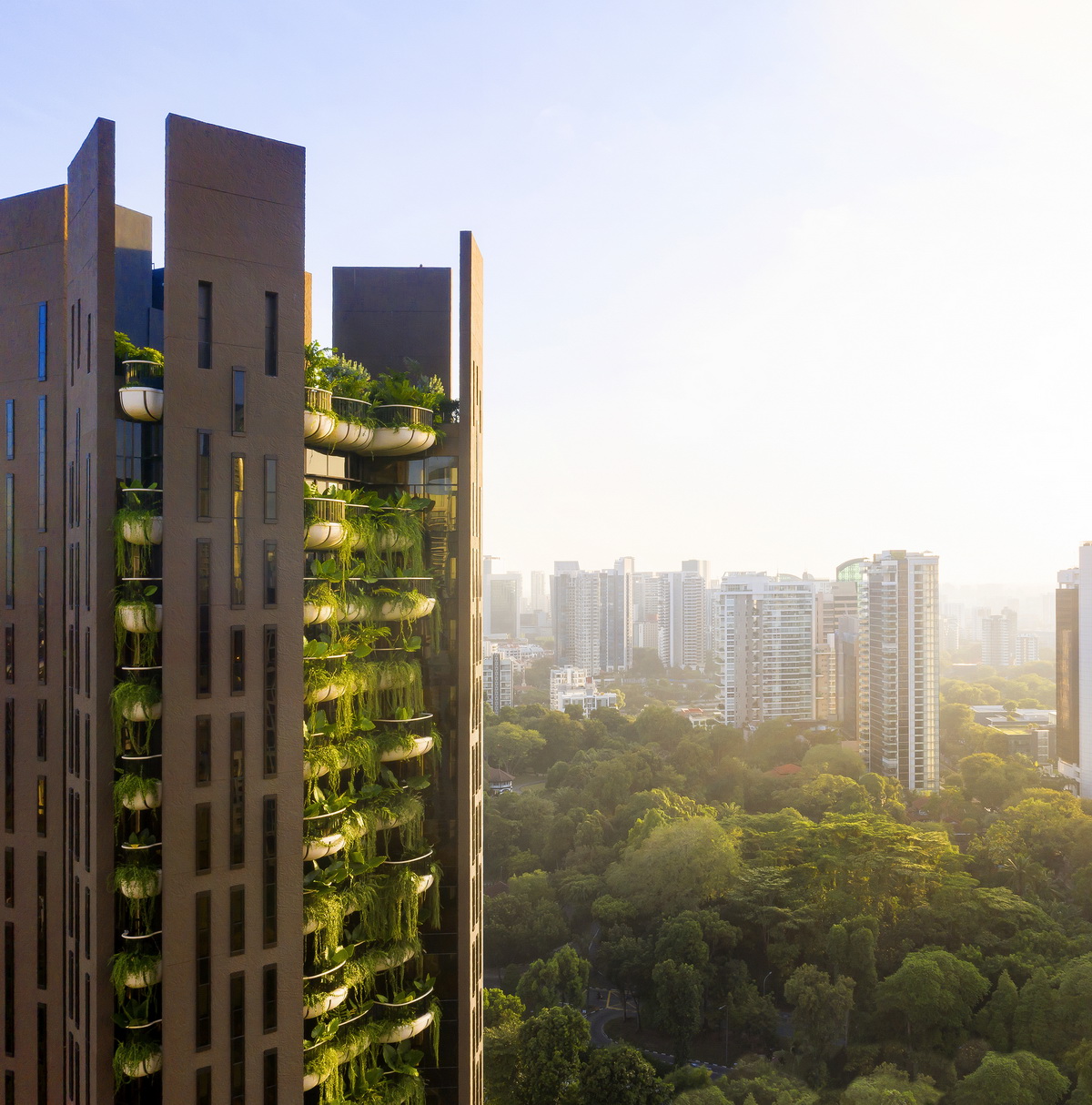 为每一户公寓创造花园空间是对新加坡高层公寓与街道上郁郁葱葱的植物相脱离的回应。项目回应了李光耀关于将新加坡建设为一个“花园城市”的构想,通过一系列的空中花园,将新加坡的景观向上延伸至整座高层建筑,将室内外空间融为一体,提供了新加坡绿色植物的景观视野。