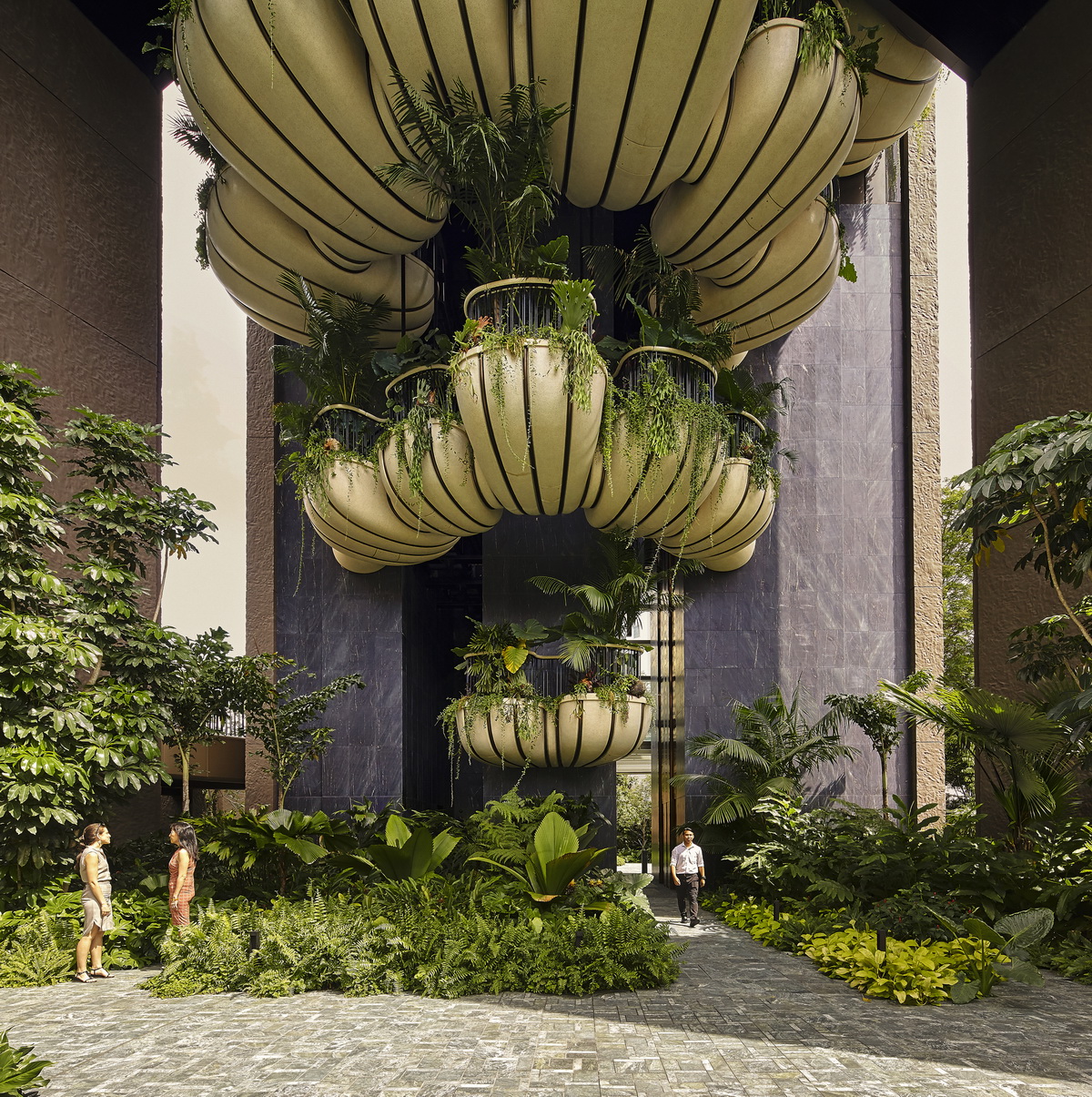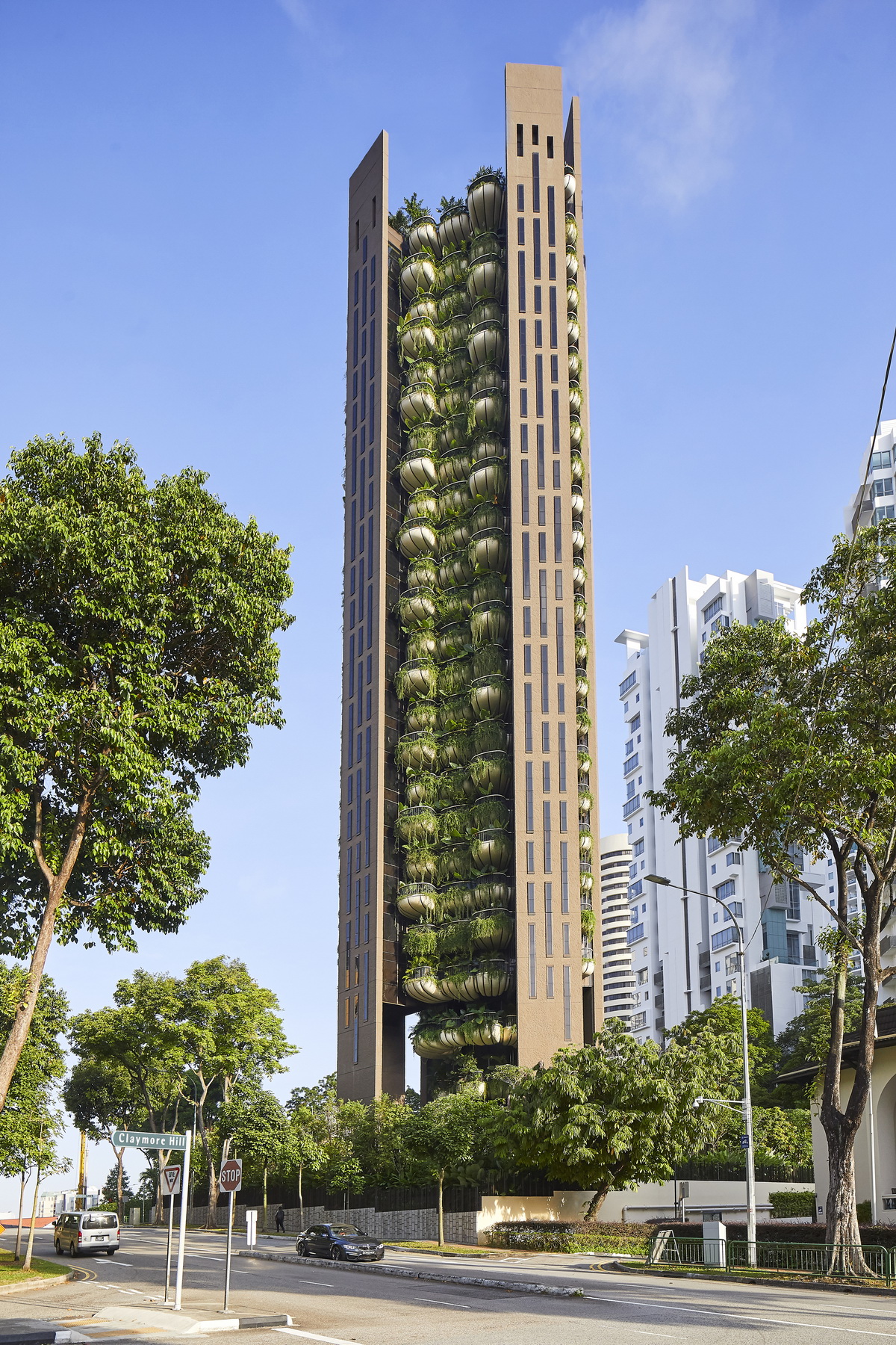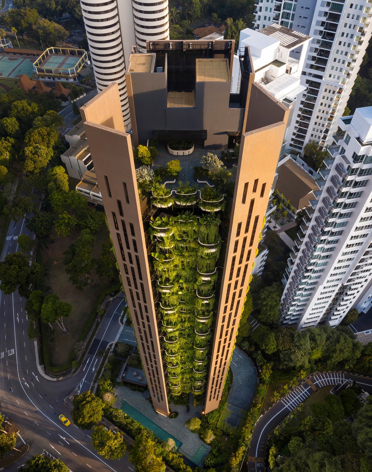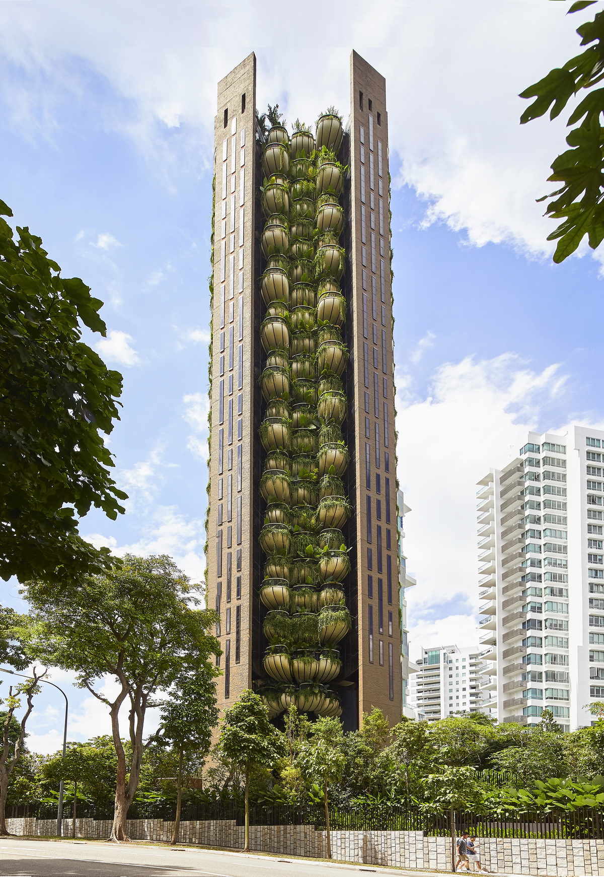 这座104.5米高的建筑位于新加坡历史上著名的乌节路附近,该地区的城市公寓生活与自然紧密联系,项目对其进行了独特的回应。