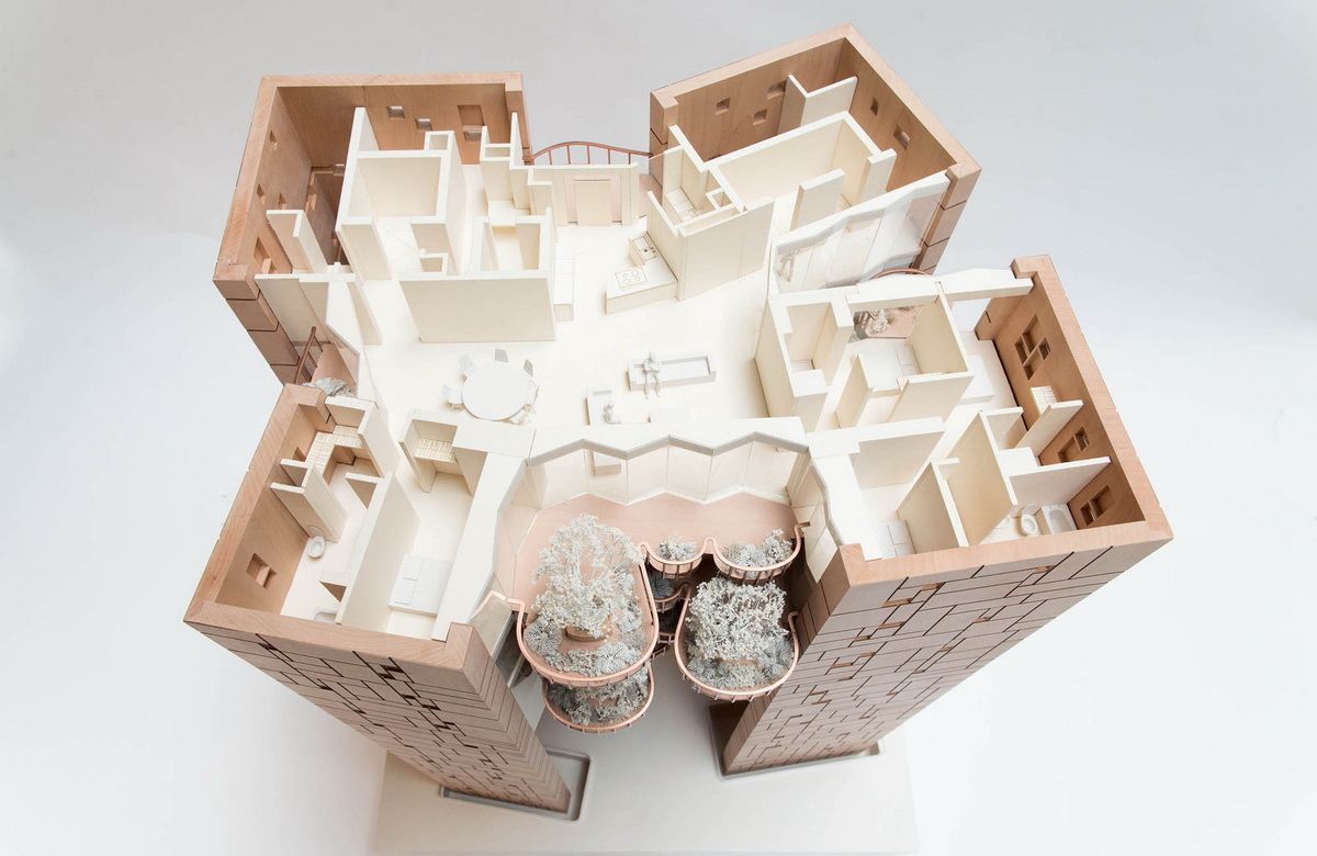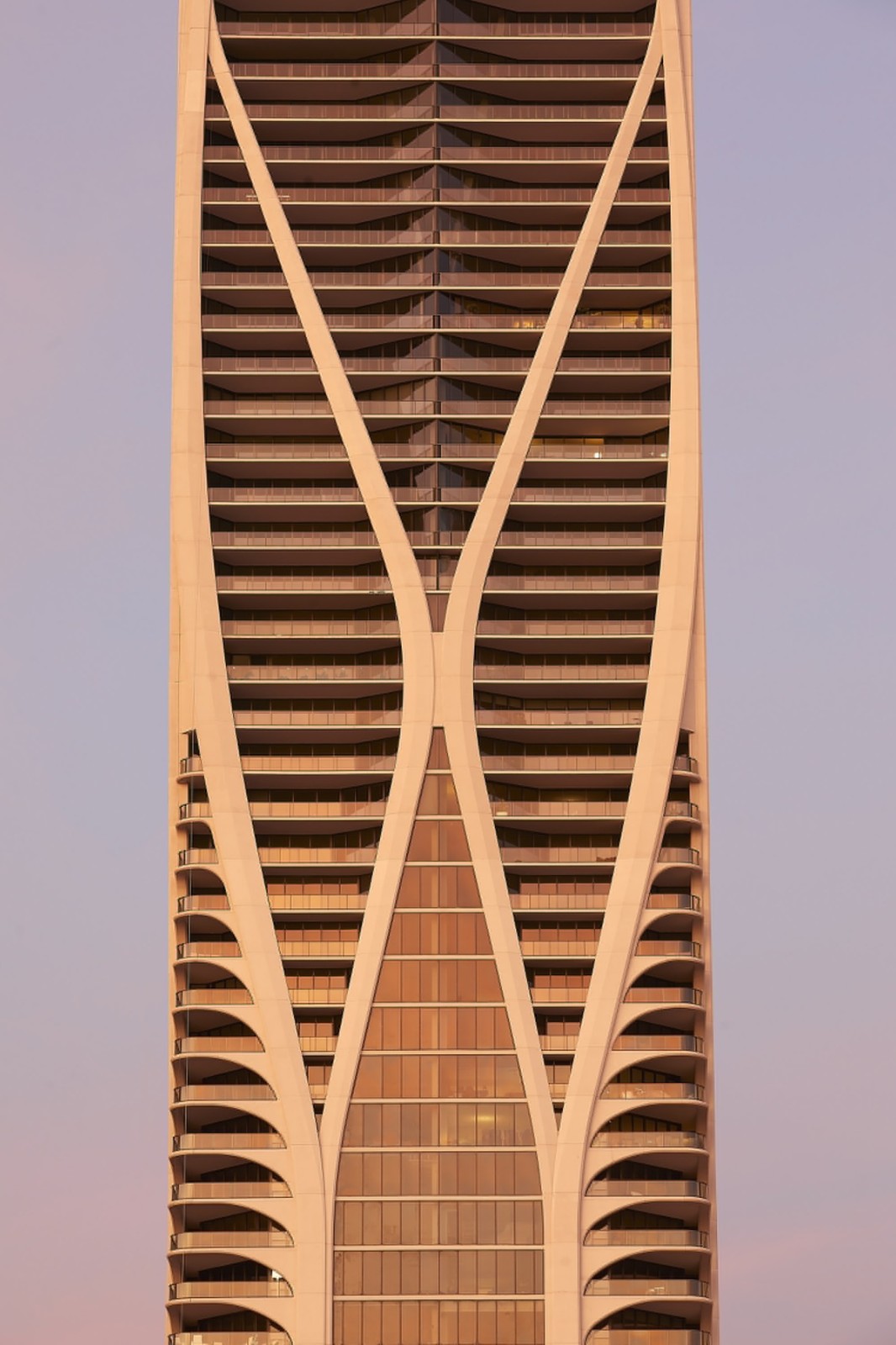 塔楼的外部结构是建筑整体的承重结构,内部几乎没有柱子,外骨骼的流线曲率在每层楼上的平面图略有不同,在较低楼层,阳台在拐角深处,在高层,阳台则设置在结构后。