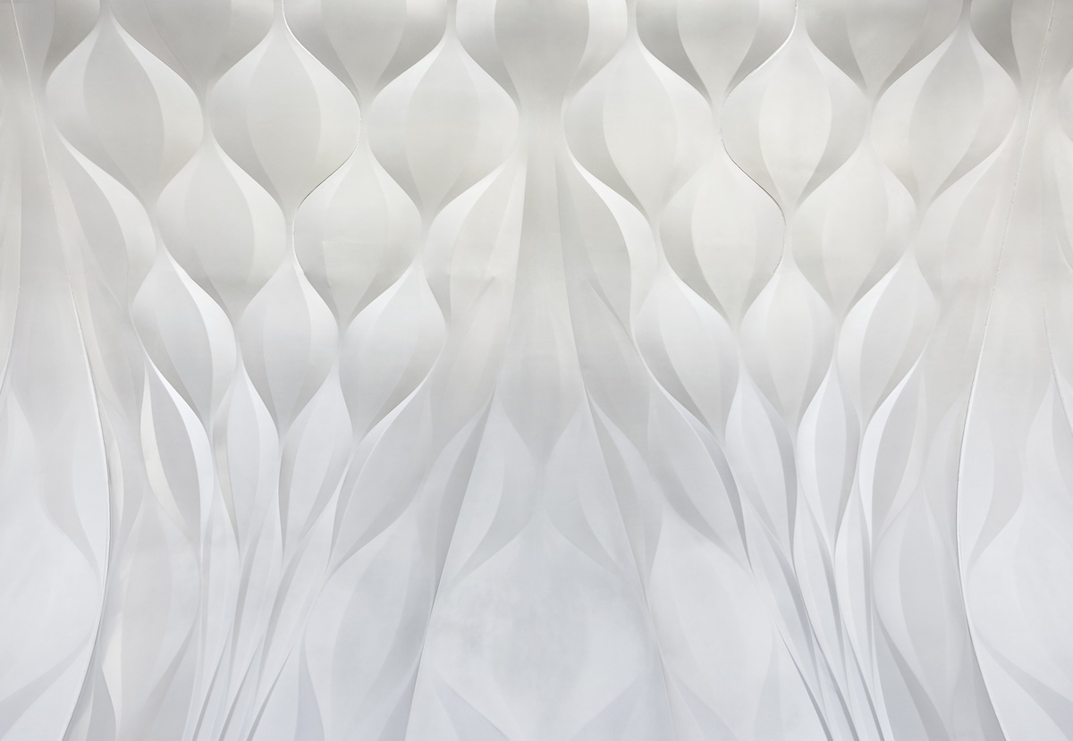 “千号馆”整体采用玻璃纤维钢筋混凝土模块,具有永久性的混凝土模块是最少维护的建筑表皮。挂在流线型外骨骼表皮,像水晶一样形成多面的立面,与坚固的结构形成反差。